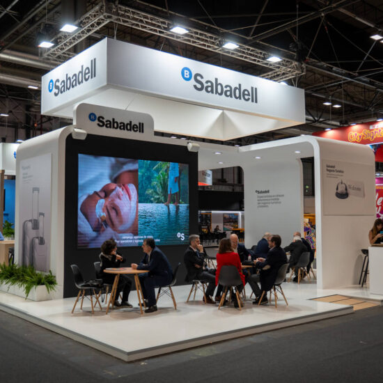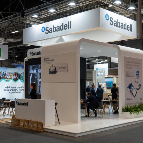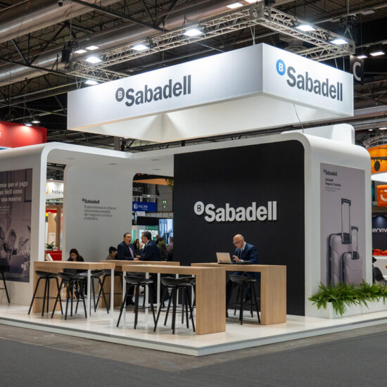 En FITUR 2025, Banco Sabadell destacó como un socio estratégico del sector turístico, y nuestro diseño de stand fue clave para transmitir este mensaje. Creamos un espacio moderno, sofisticado y funcional que reflejaba los valores de la entidad: cercanía, innovación y liderazgo en soluciones financieras.